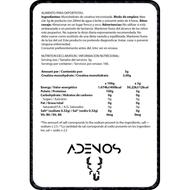 Adenos en una creatina monohidrato micronizada con la más alta pureza.